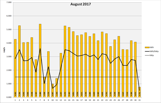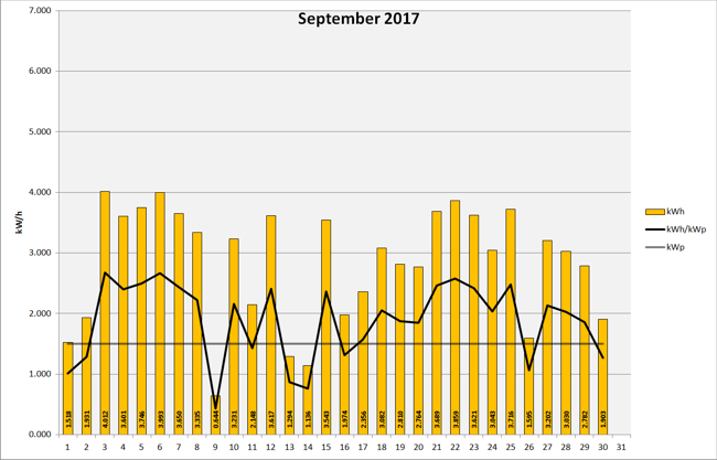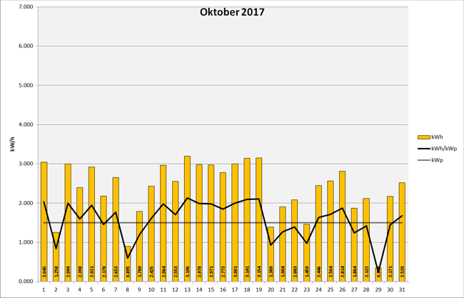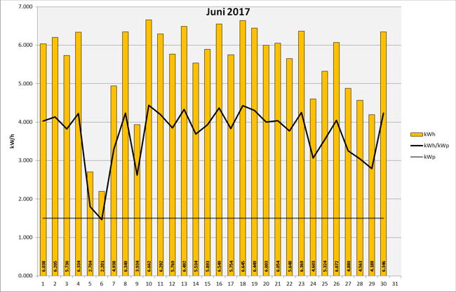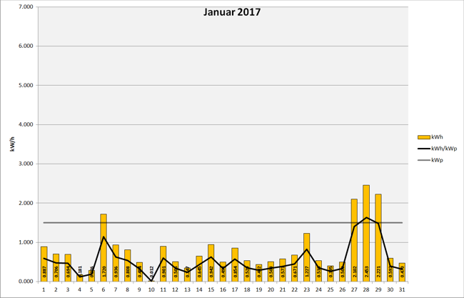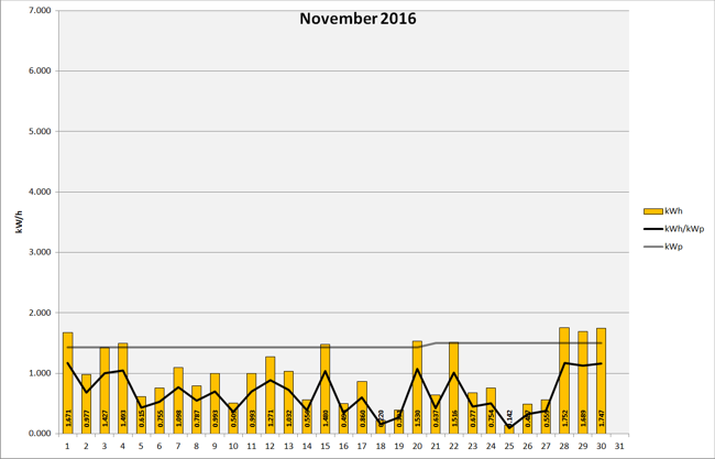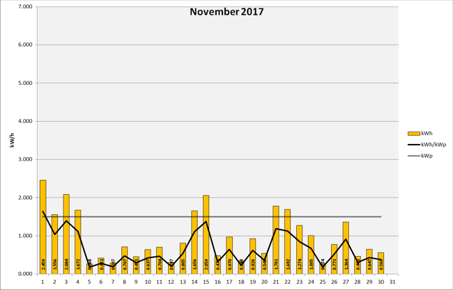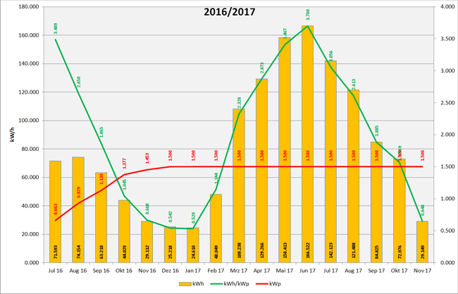 Anlagenleistung: 1.500 kWp Amortisation: █████ █████ █████ █████ █████ █████ █████ █████ █████ █████ 11% Stand: 01.12.2017 23:59:59 - Laufzeit: 517 Tage - Total Produktion: 1393,789 kWh